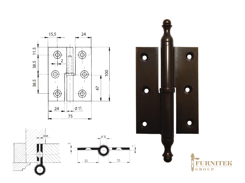 Эксклюзивная дверная петля карточная FS 23636 античная бронза